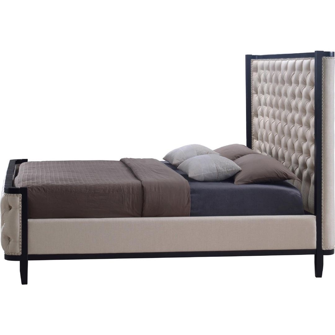 Эта кровать — воплощение изысканной элегантности и комфорта. Каретная стёжка и рамка из массива бука придают ей неповторимый шарм и подчеркивают её премиальный статус. Изголовье, обшитое высококачественной тканью и украшенное декоративными гвоздиками ручной работы, создает премиальный вид и добавляет нотку роскоши. Высокий и массивный профиль изголовья позволяет использовать его с матрасами различных размеров и форм, обеспечивая универсальность и удобство. Под матрасом в основании расположены ламели из натурального массива, что обеспечивает комфорт и долговечность. Ножки с рифлением облегчают чистку и оставляют место для хранения небольших предметов, добавляя функциональности. Наполнение из синтепона и пенополиуретана (поролона) обеспечивает мягкость и поддержку, создавая идеальные условия для отдыха. Эта кровать станет идеальным дополнением вашей спальни, создавая атмосферу уюта и комфорта, и станет настоящим украшением вашего дома.